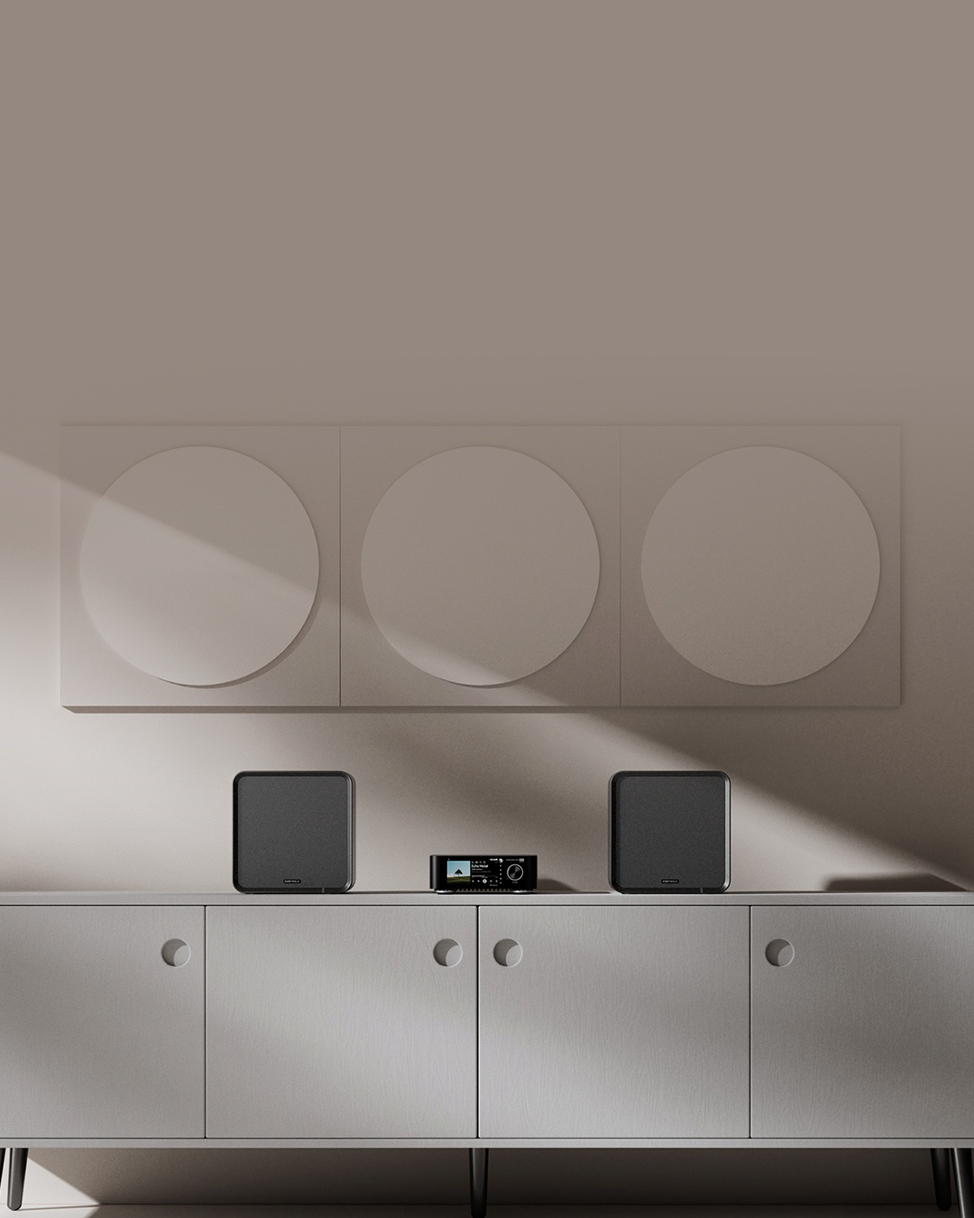 SE100 可完美擺進 IKEA KALLAX 層架系統其中一格,將音響設備與居家空間兩者之間,成功整合成理想的套裝模組。